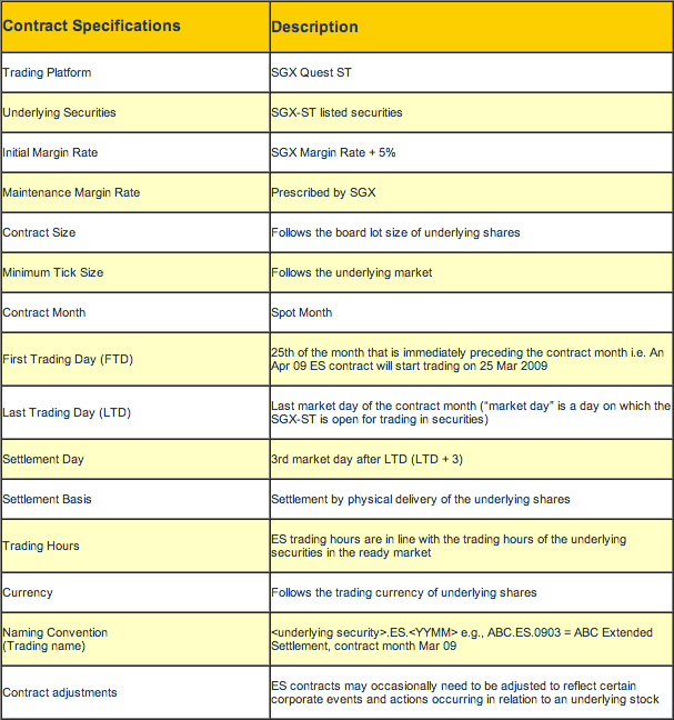 EXTENDED SETTLEMENT CONTRACT SPECIFICATIONS