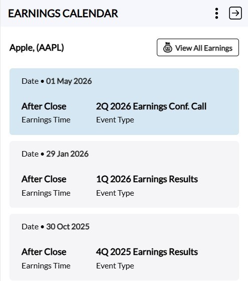 • All: View a comprehensive list of all upcoming earnings schedule.